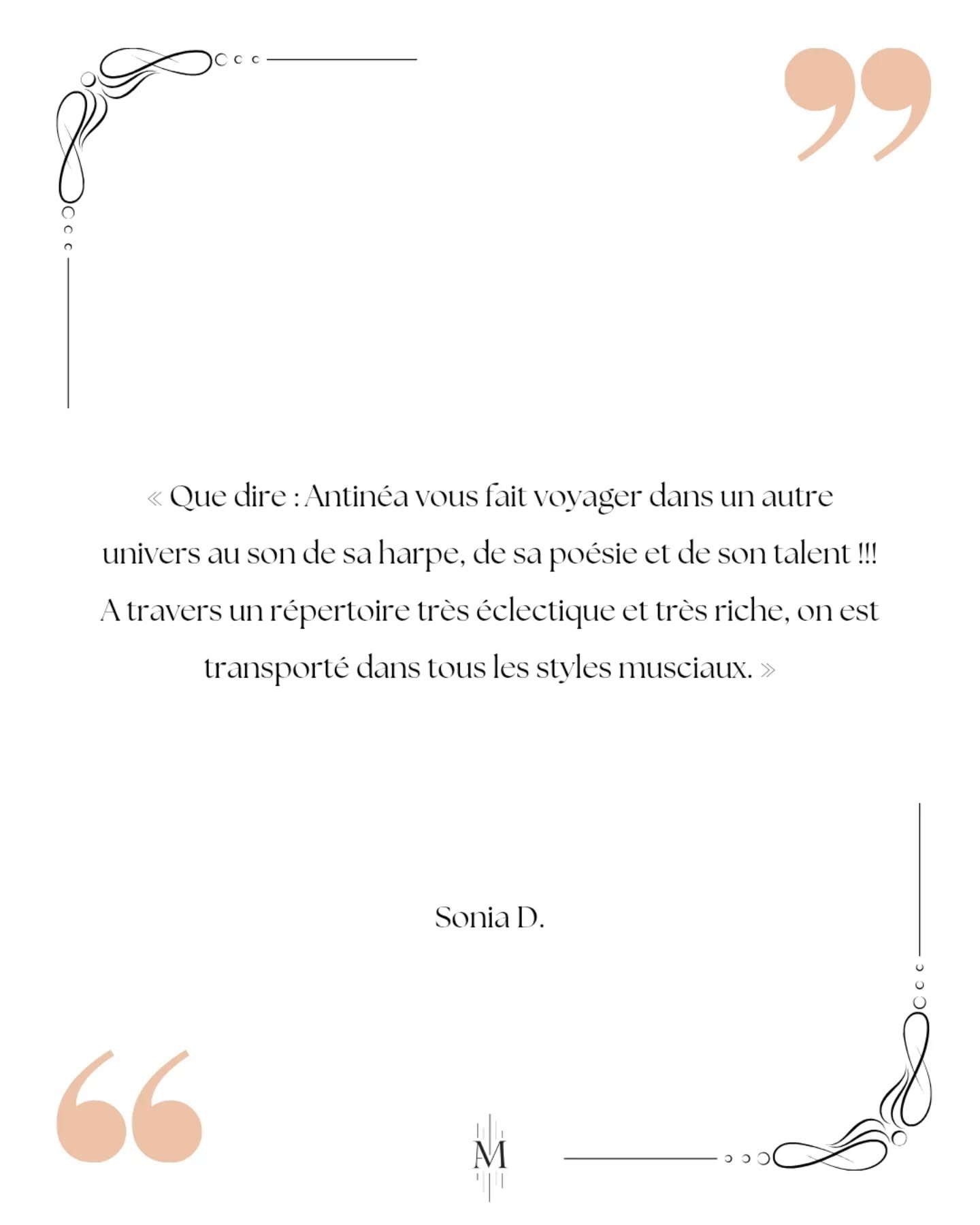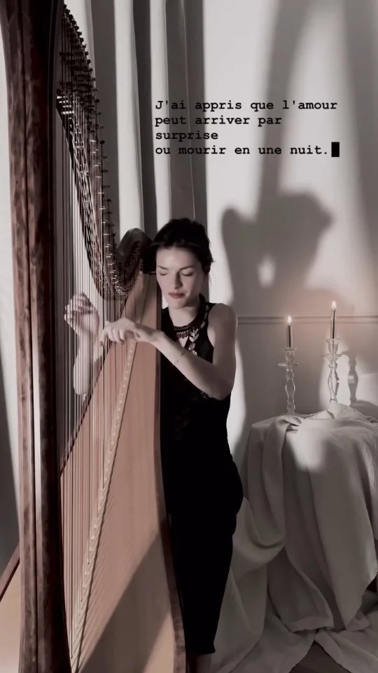 Je suis ravie de vous accueillir dans mon univers musical, où la passion pour la harpe invite à la douceur et à l’émotion. Sur ce site, je vous partage ma passion, vous invite à découvrir mon parcours ainsi que mes prestations, et vous tiens informés de mes actualités récentes.